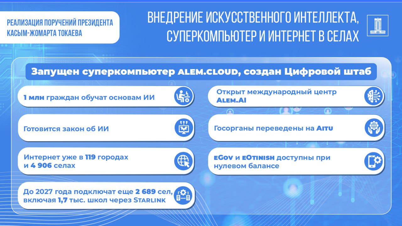 📌В рамках реализации поручений Президента РК Касым-Жомарта Токаева, озвученных в Послании «Казахстан в эпоху искусственного интеллекта: актуальные задачи и их решения через цифровую трансформацию» Правительством ведется активная работа по внедрению цифровых технологий, формирующих основу для устойчивого развития экономики.