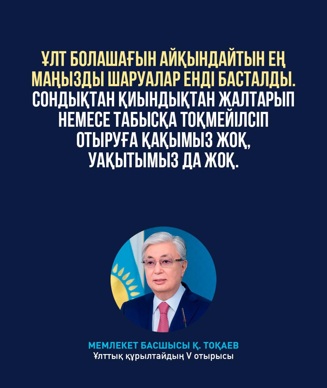 Навигация по записям Предыдущая записьМемлекет басшысының Ұлттық құрылтайдың V отырысында сөйлеген сөзінен